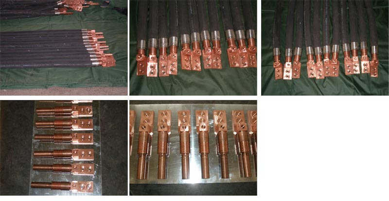 此電纜的導(dǎo)電連接面是經(jīng)過(guò)防腐處理(表面鍍錫),水冷電纜的進(jìn)出水管采用不銹鋼302制作,軟體導(dǎo)線采用單線直徑為0.45㎜無(wú)氧銅絲銅絞線,電纜所用外護(hù)套是采用美國(guó)進(jìn)口膠管,橡膠管與電纜導(dǎo)電連接面是采用不銹鋼套,用專業(yè)設(shè)備3600一次性擠壓而成,無(wú)扭曲現(xiàn)象。 性能特點(diǎn):⑴電纜連接頭無(wú)觸點(diǎn),無(wú)焊點(diǎn),無(wú)焊縫,用整根T2銅棒在數(shù)控車床,銑床上加工而成,銅頭與導(dǎo)線連接,采用一次性擠壓,不傷線,導(dǎo)電性能好。 ⑵外套管:采用美國(guó)進(jìn)口橡膠,耐水壓〉17Mpa,耐擊穿電壓高于3000V。 ⑶電纜連接頭與外套管緊固,采用1Cr18Ni9Ti不銹鋼套,無(wú)磁性,不生銹,用大型液壓設(shè)備3600一次性擠壓,美觀耐用,密封效果好。 ⑷軟體導(dǎo)線采用直徑為0.45㎜,在專用繞線機(jī)上加工而成,柔軟,彎曲半徑小,有效截面大。